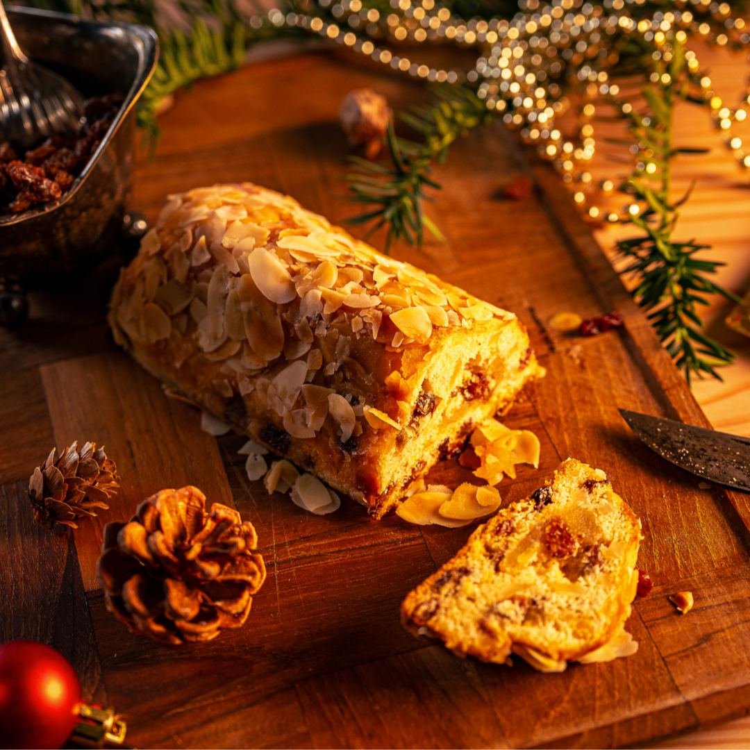 Unser glutenfreier Gourmet-Stollen wird in unserer Backstube in Münster-Wolbeck liebevoll von Hand gefertigt. Mit sorgfältig ausgewählten Zutaten, feiner Butter, aromatischen Fruchtschalen und einem Hauch Rum entsteht ein Stollen voller weihnachtlicher Düfte und festlichem Genuss – die perfekte Köstlichkeit, um die Adventszeit zu versüßen.